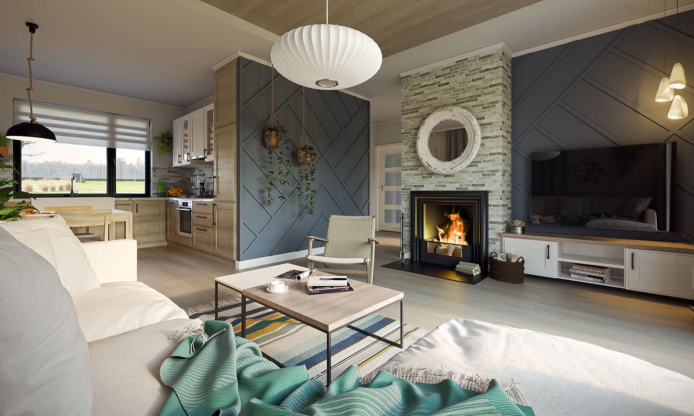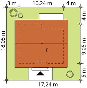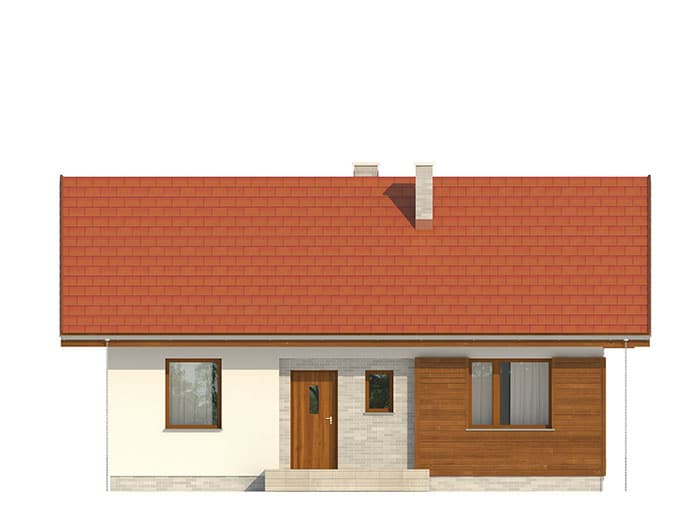 Nieduży jednorodzinny budynek mieszkalny, parterowy, zaprojektowany w technologii szkieletu drewnianego. Ergonomiczny i optymalny układ pomieszczeń zapewnia komfort 3-osobowej rodzinie. Funkcjonalnie rozplanowana przestrzeń została wyraźnie podzielona na część dzienną i nocną. Część reprezentacyjna domu, to przestronny salon połączony z jadalnią, który otwiera się na duży, zadaszony taras oraz kuchnia. Oprócz części dziennej, zaprojektowano dwie sypialnie i dużą łazienkę, które stanowią część intymną domu. Wymiary kotłowni umożliwiają montaż kotła na każdy rodzaj paliwa. Sama bryła budynku nawiązuje do archetypu domu jednorodzinnego. Rzut budynku powstał w oparciu o rzut prostokąta, zaś sam dom został przykryty dachem dwuspadowym. Dom tym samym jest tani i prosty w budowie oraz niedrogi w utrzymaniu i eksploatacji. Projekt dostępny jest również w technologii murowanej.