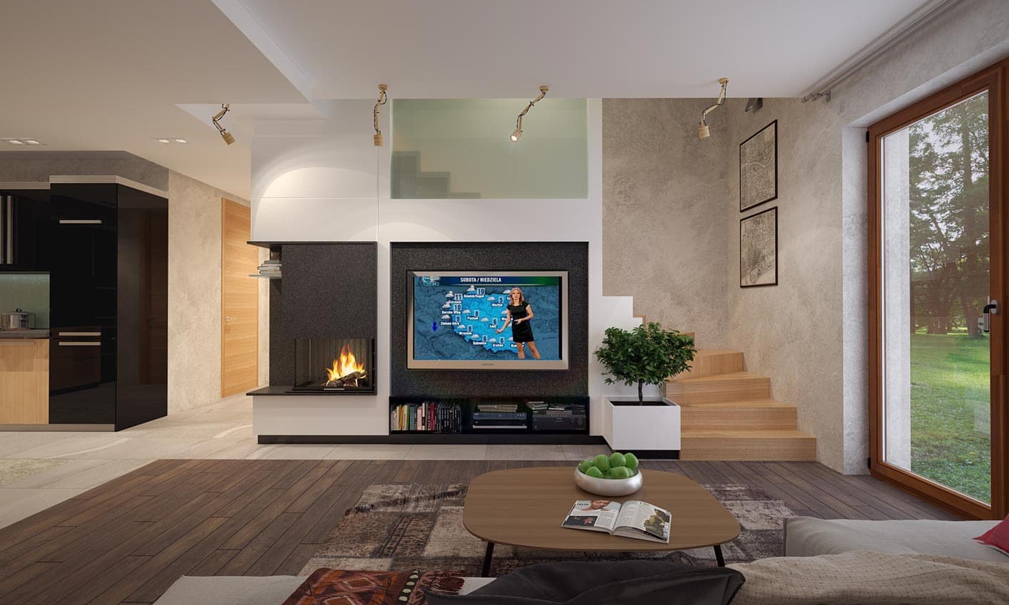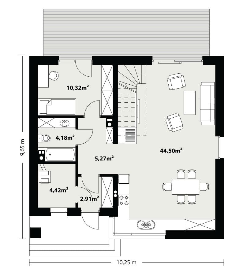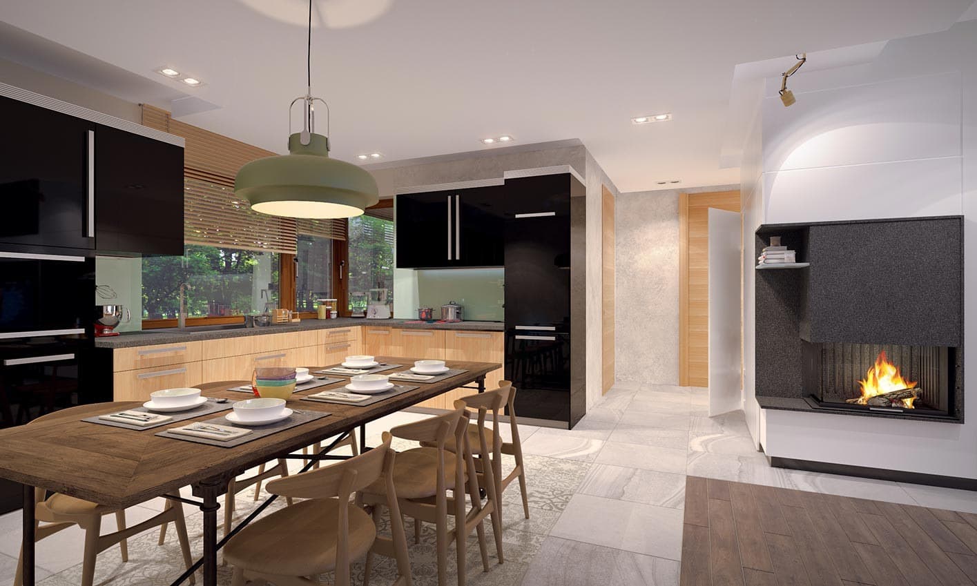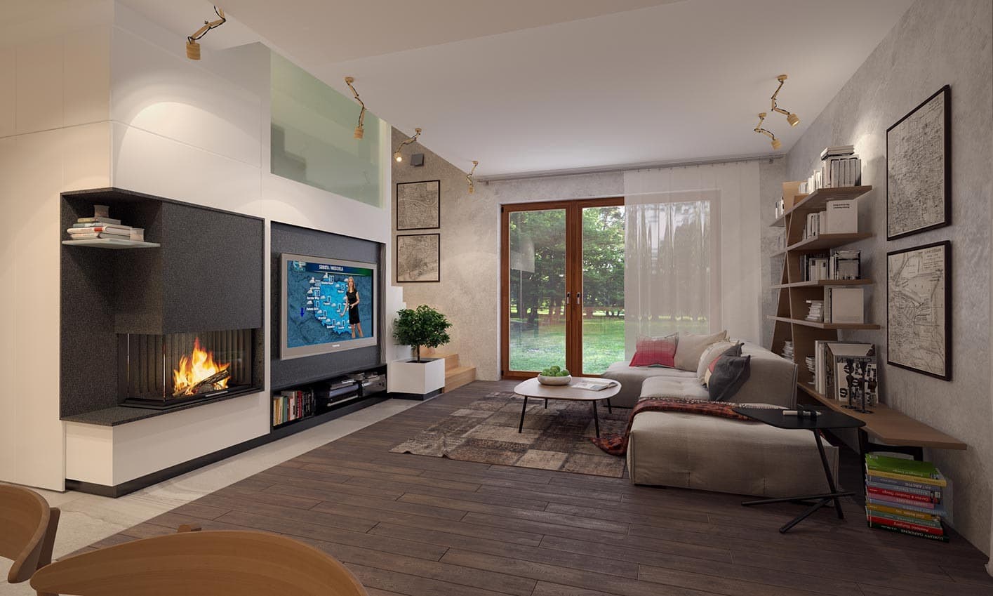Prosty, ale zarazem interesujący dom o niewielkich gabarytach. Bardzo funkcjonalny układ pomieszczeń zapewnia optymalny komfort 4-osobowej rodzinie. Na parterze zaprojektowano kuchnię połączoną z jadalnią i salonem, kotłownię, łazienkę oraz dodatkowy pokój. Na poddaszu przewidziano 3 sypialnie oraz łazienkę. Elegancki styl tego budynku uzyskano poprzez połączenie klasycznej bryły domu jednorodzinnego z nowoczesnymi elewacjami i materiałami.