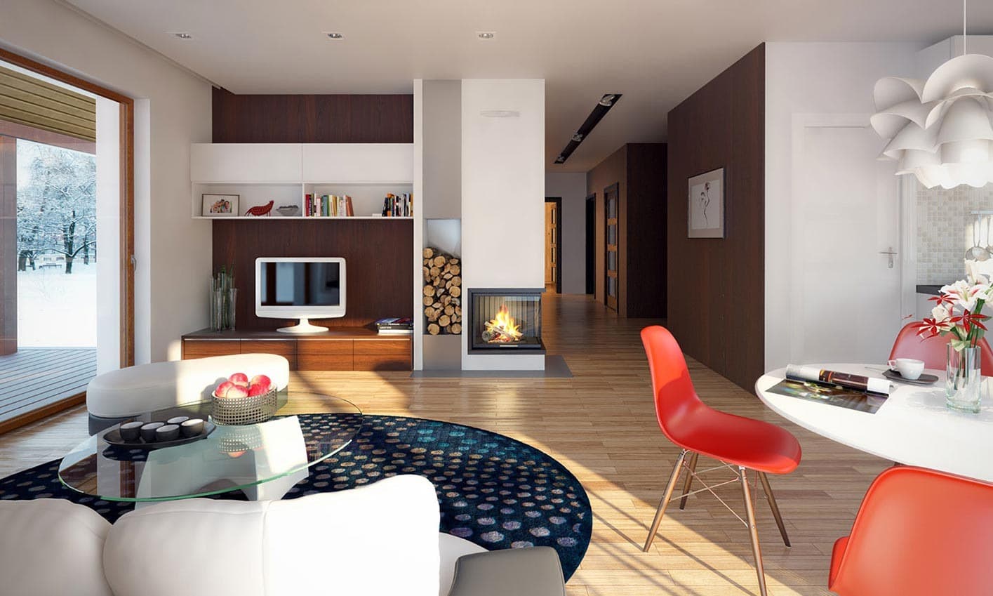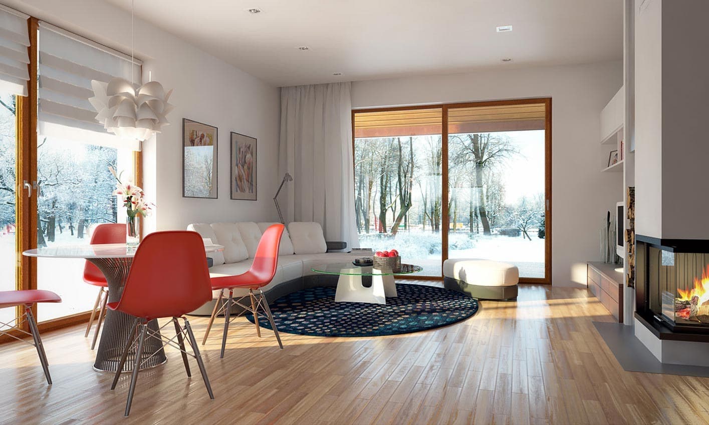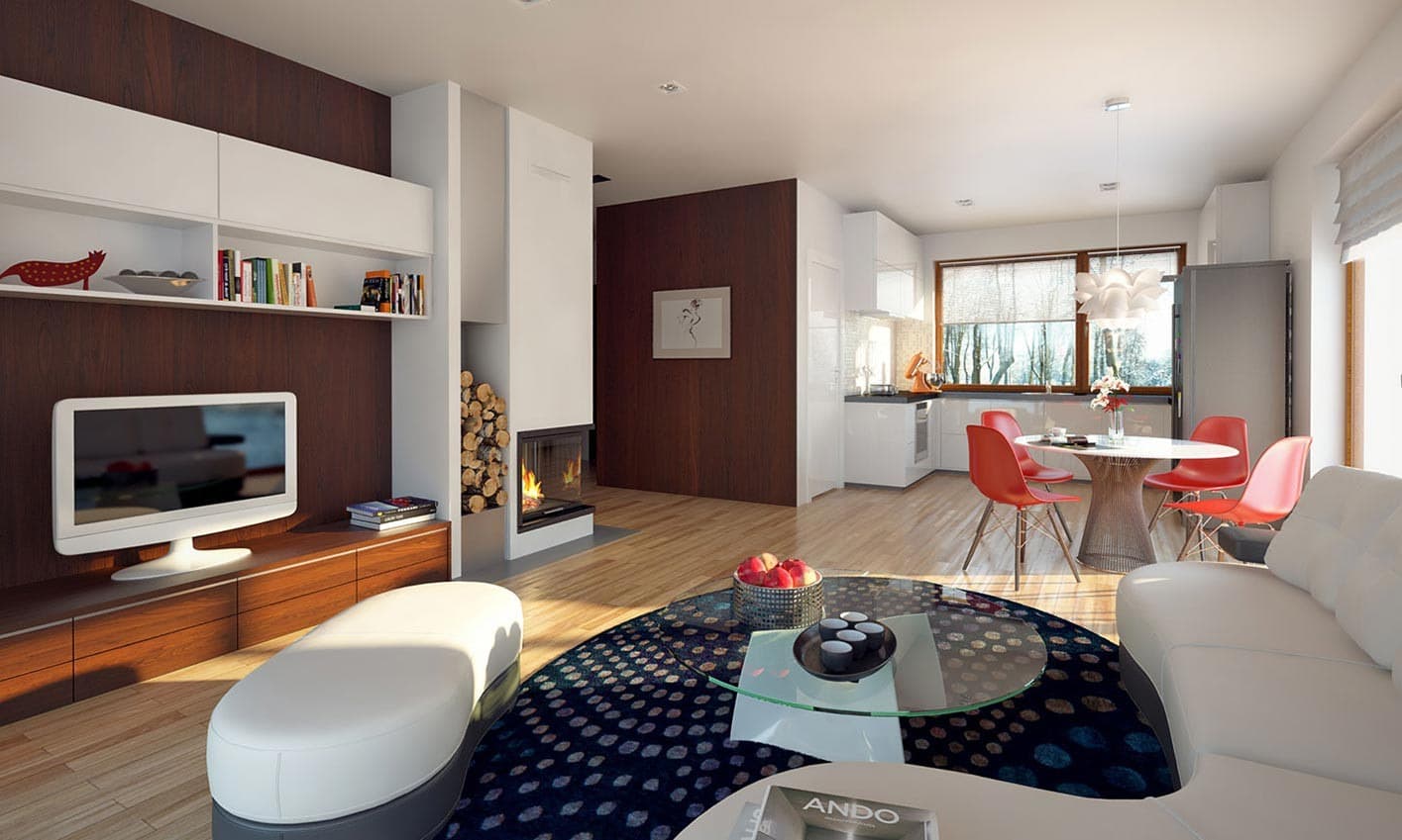 Niewielki jednorodzinny budynek mieszkalny, parterowy, niepodpiwniczony. W swojej niewielkiej formie zawarł wygodny i optymalny układ pomieszczeń, który zapewni komfort 4-osobowej rodzinie. Funkcjonalnie rozplanowana przestrzeń została wyraźnie podzielona na część dzienną i nocną. Część reprezentacyjna domu, to przestronny salon połączony z jadalnią, który otwiera się na duży zadaszony taras, kuchnia wzbogacona o spiżarnię. Oprócz części reprezentacyjnej, zaprojektowano trzy sypialnie i dużą łazienkę stanowiącą cześć intymną domu, oraz dużą kotłownię w części gospodarczej. Wymiary kotłowni umożliwiają montaż kotła na każdy rodzaj paliwa, w tym na paliwo stałe. Sama bryła budynku nawiązuje do archetypu domu jednorodzinnego. Rzut budynku powstał w oparciu o rzut prostokąta, zaś sam dom został przykryty dachem dwuspadowym. Dom tym samym jest tani i prosty w budowie oraz niedrogi w utrzymaniu i eksploatacji.
