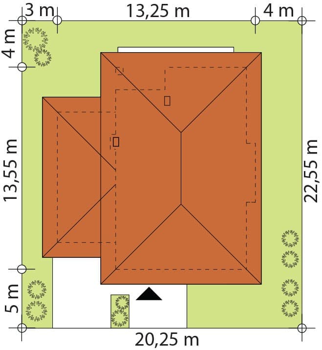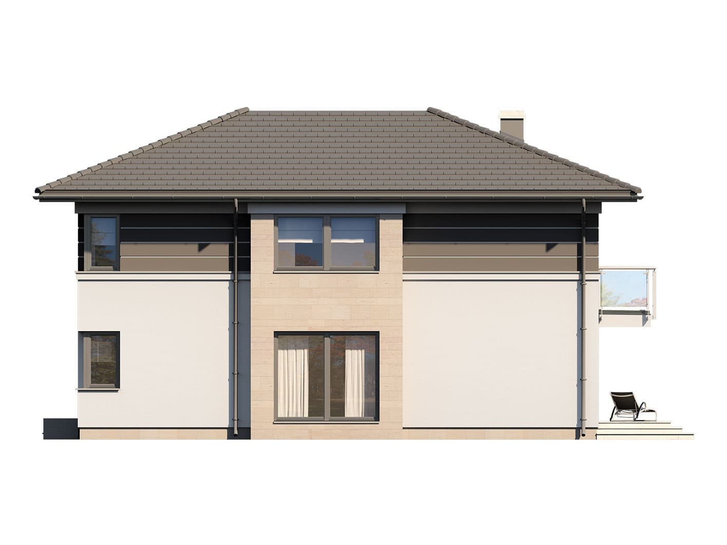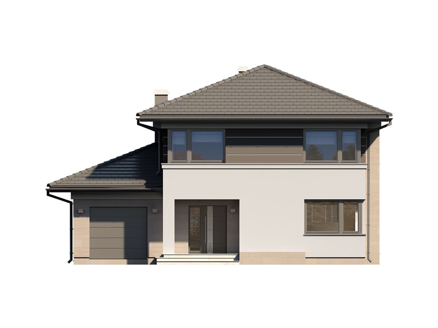 Enes, to bardzo interesujący projekt nowoczesnego domu piętrowego przeznaczonego dla 4-osobowej rodziny. Ta typowo miejska rezydencja o reprezentacyjnym wyglądzie i optymalnej powierzchni użytkowej posiada bogaty program funkcjonalny, rozłożony na dwóch pełnych kondygnacyjnych, który zapewni komfort nawet dla wymagających inwestorów. Parter zaprojektowano jako otwartą przestrzeń dzienną, złożoną z połączonego salonu, jadalni i kuchni ze spiżarnią. Przewidziano tutaj także dodatkowy pokój, który można wykorzystać jako gabinet lub dodatkową sypialnię. Na parterze znajduje się również duża kotłownia, na każdy rodzaj paliwa oraz jednostanowiskowy garaż . Na piętrze zaprojektowano 3 sypialnie i łazienkę. Główna sypialnia ma zapewnioną własną garderobę oraz łazienkę. Taką dodatkową przestrzeń można według potrzeb przerobić np. na kącik do pracy. Karat zachwyca ciekawą, ponadczasową, klasyczną bryłą ujętą we współczesny elegancki wizerunek. Rezydencja ta stanowi doskonałą propozycję dla inwestorów poszukujących komfortowego domu w estetycznym wydaniu.