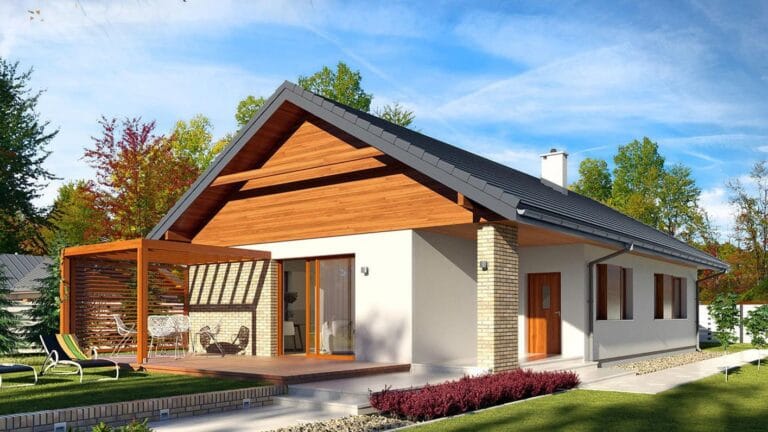 Dom murowany Neo Powierzchnia użytkowa89,84 m2 Cena projektu5100 zł Powierzchnia użytkowa 89,84 m² Powierzchnia garażu 30,71 m² Powierzchnia zabudowy 155,05 m²...