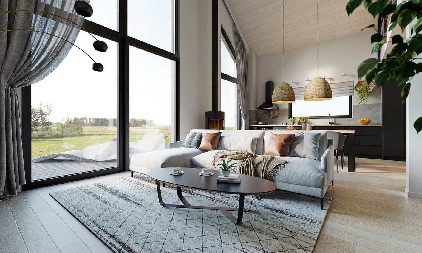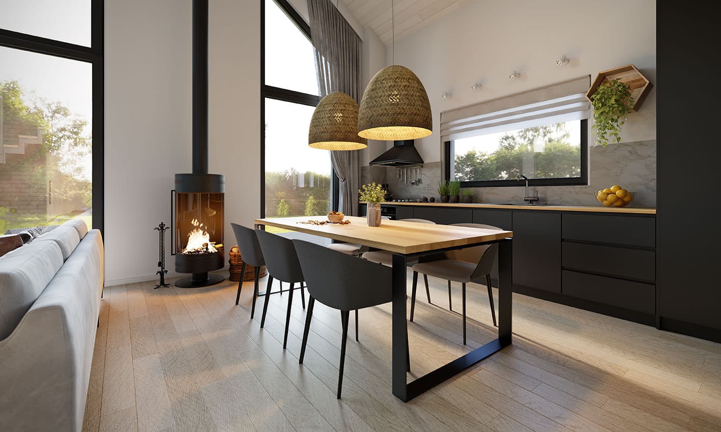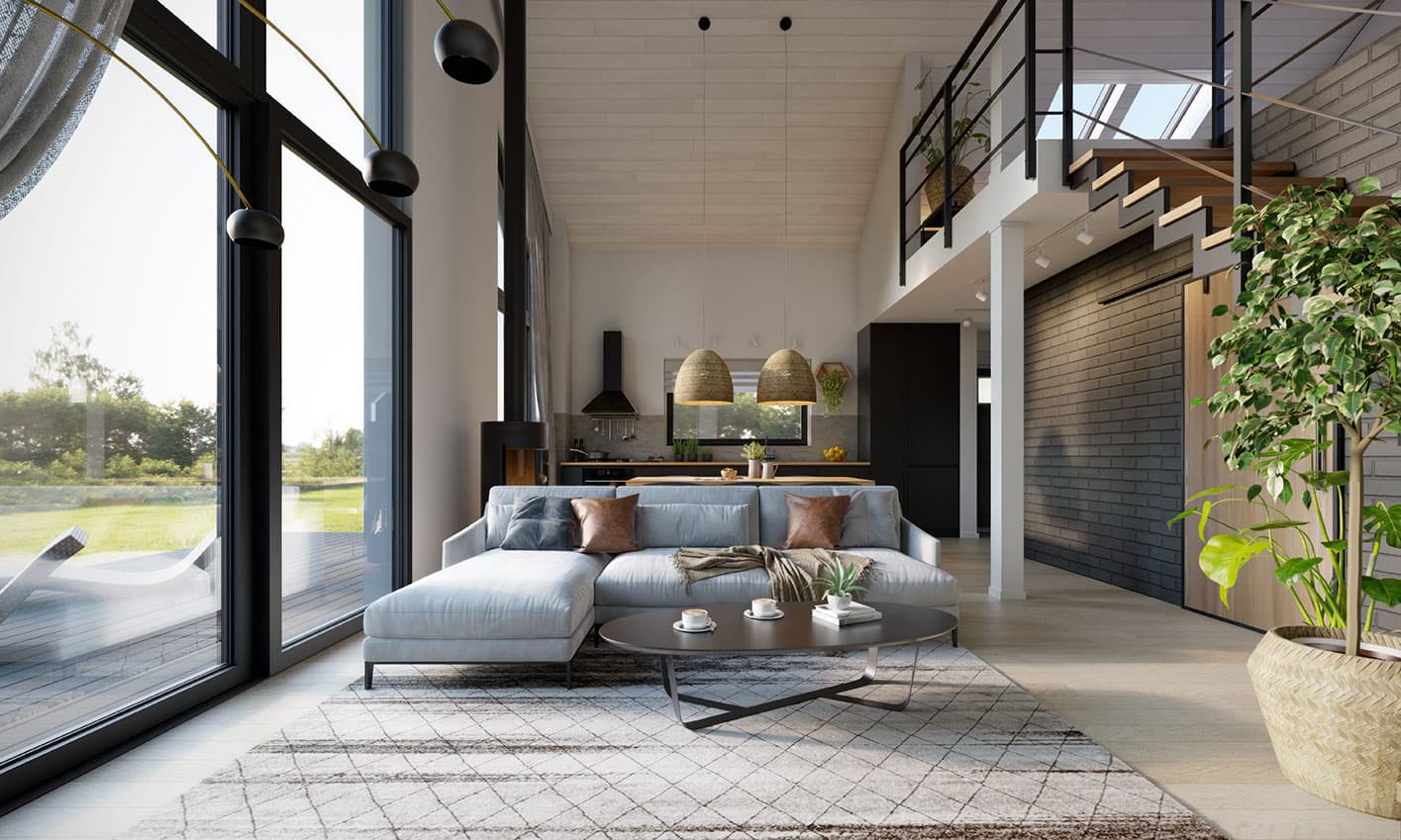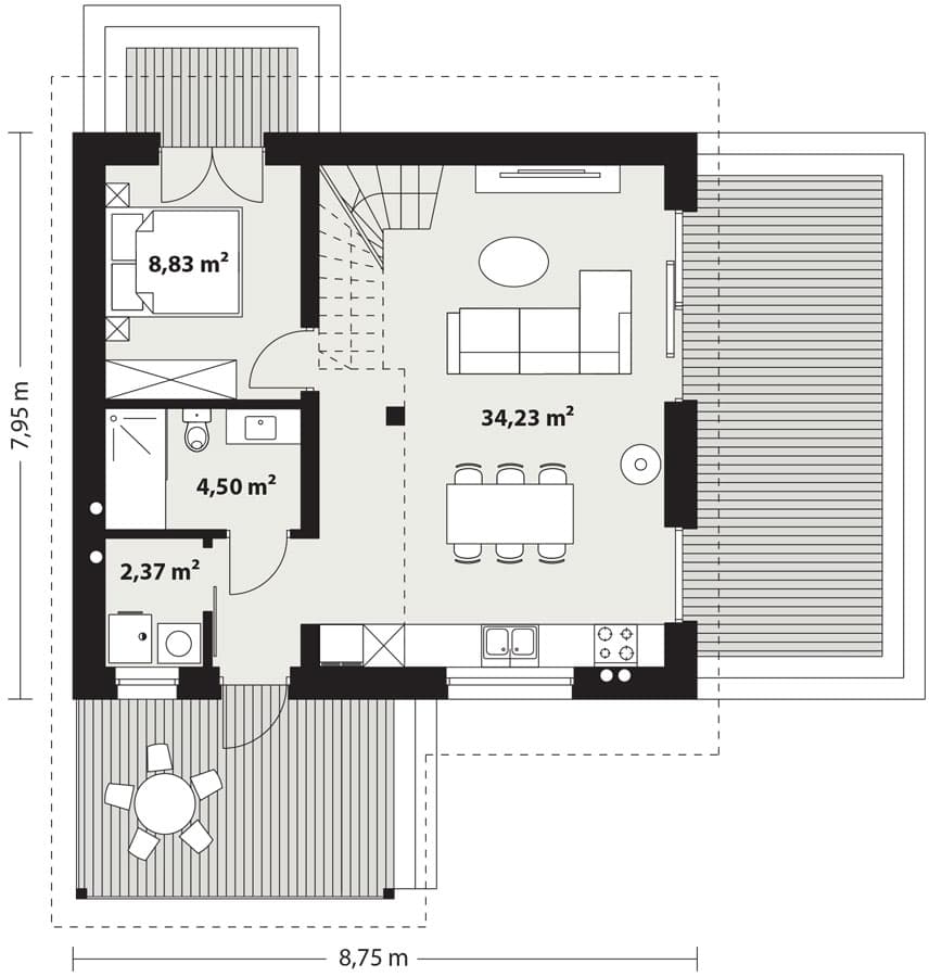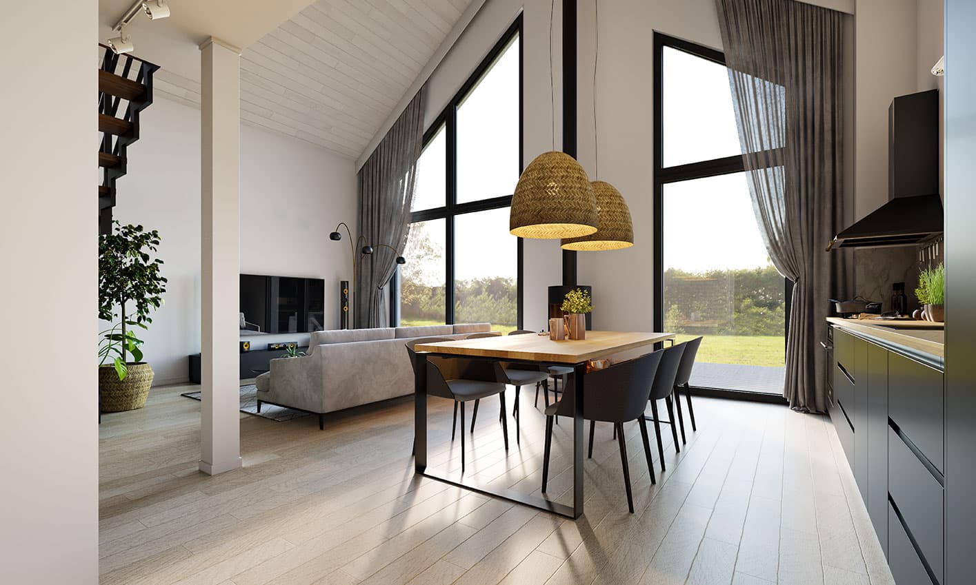 Erna 3 to niewielki dom jednorodzinny lub letniskowy. Posiada sypialnię na parterze oraz otwartą część dzienną z antresolą na której jest dodatkowa przestrzeń do dowolnej aranżacji. Dzięki powierzchni zabudowy 69,5 m2, może być budowany na zgłoszenie. Dom posiada duże przeszklenie w ścianie szczytowej a wejście jest przez zadaszony taras z boku domu co pozwala sytuować dom również na działkach z wejściem od południa. Standardowo dom wyposażony jest w pompę ciepła oraz kominek.