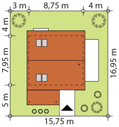 Dach: dachówka lub blachodachówka Elewacje: tynk, szalówka Strop: żelbetowy Ściany wewnętrzne: murowane Ściany zewnętrzne: dwuwarstwowe, pustak ceramiczny, docieplony styropianem