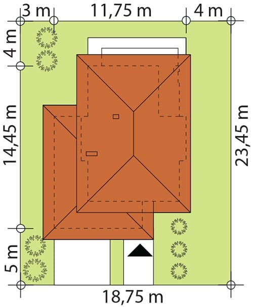 Dom murowany Filo Powierzchnia użytkowa133,75m2 Cena projektu5200 zł Powierzchnia użytkowa 133,75 m² Powierzchnia garażu 18 m² Powierzchnia zabudowy...