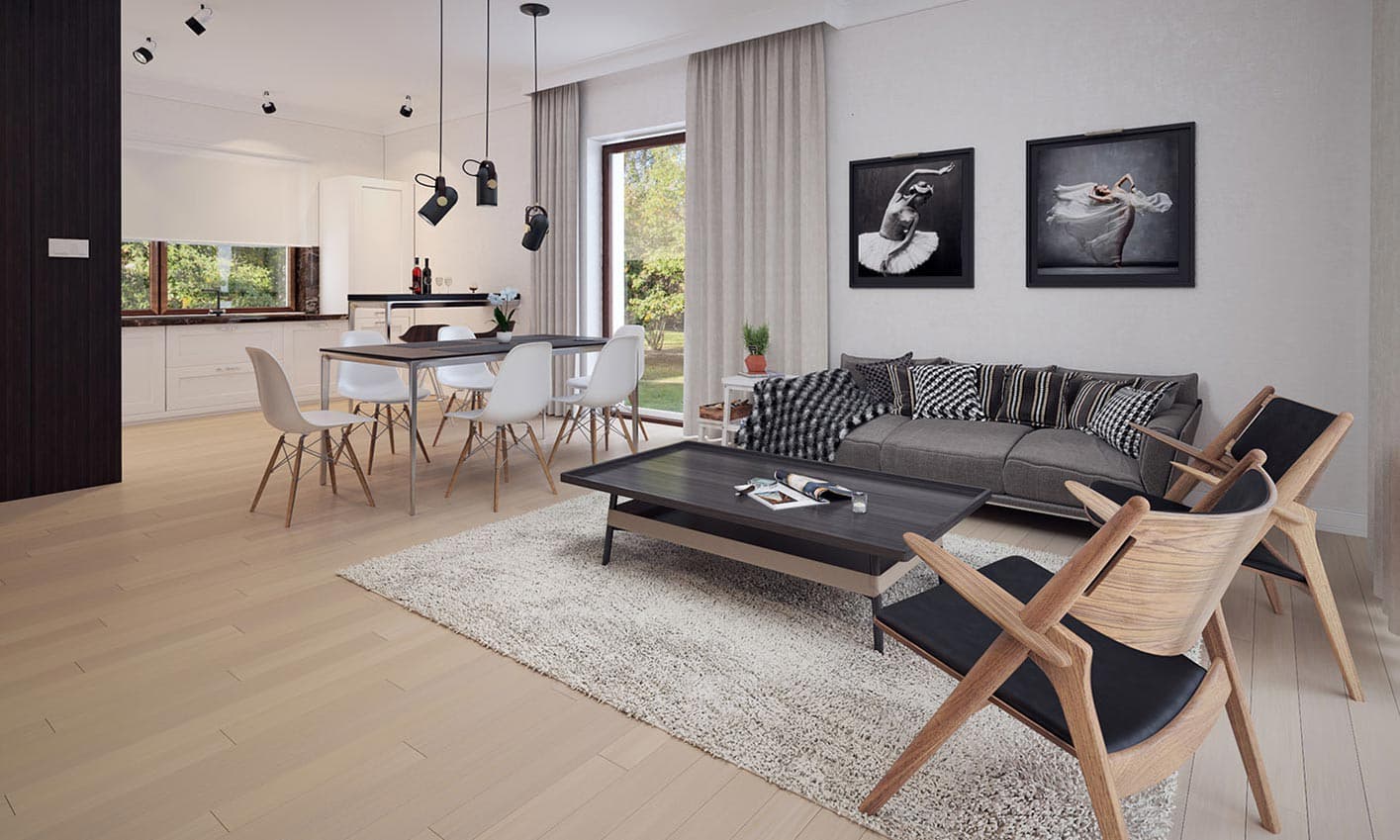 Loro to mały jednorodzinny dom parterowy zaprojektowany z myślą o 3-osobowej rodzinie, która marzy o prostym, ale nowoczesnym domu. Wnętrze, pomimo niewielkiej powierzchni, połączeniu kuchni z jadalnią i salonem i otwarciu poprzez liczne przeszklenia na zewnątrz sprawia wrażenie przestronności i lekkości. Ta prosta, klasyczna bryła z nowoczesnymi elewacjami, wewnątrz posiada tradycyjny podział na część dzienną i nocną oraz gospodarczą z kotłownią na paliwo stałe.